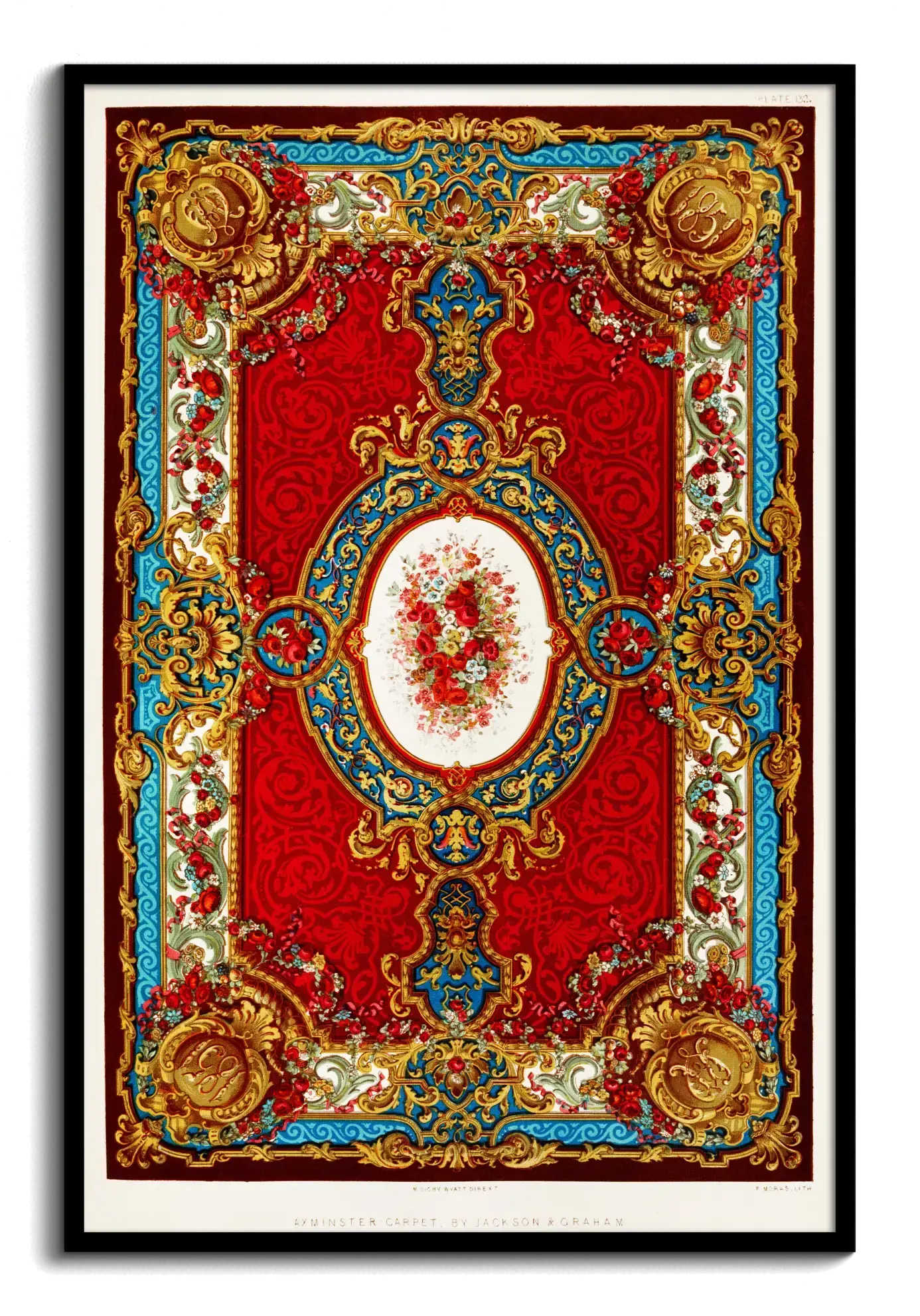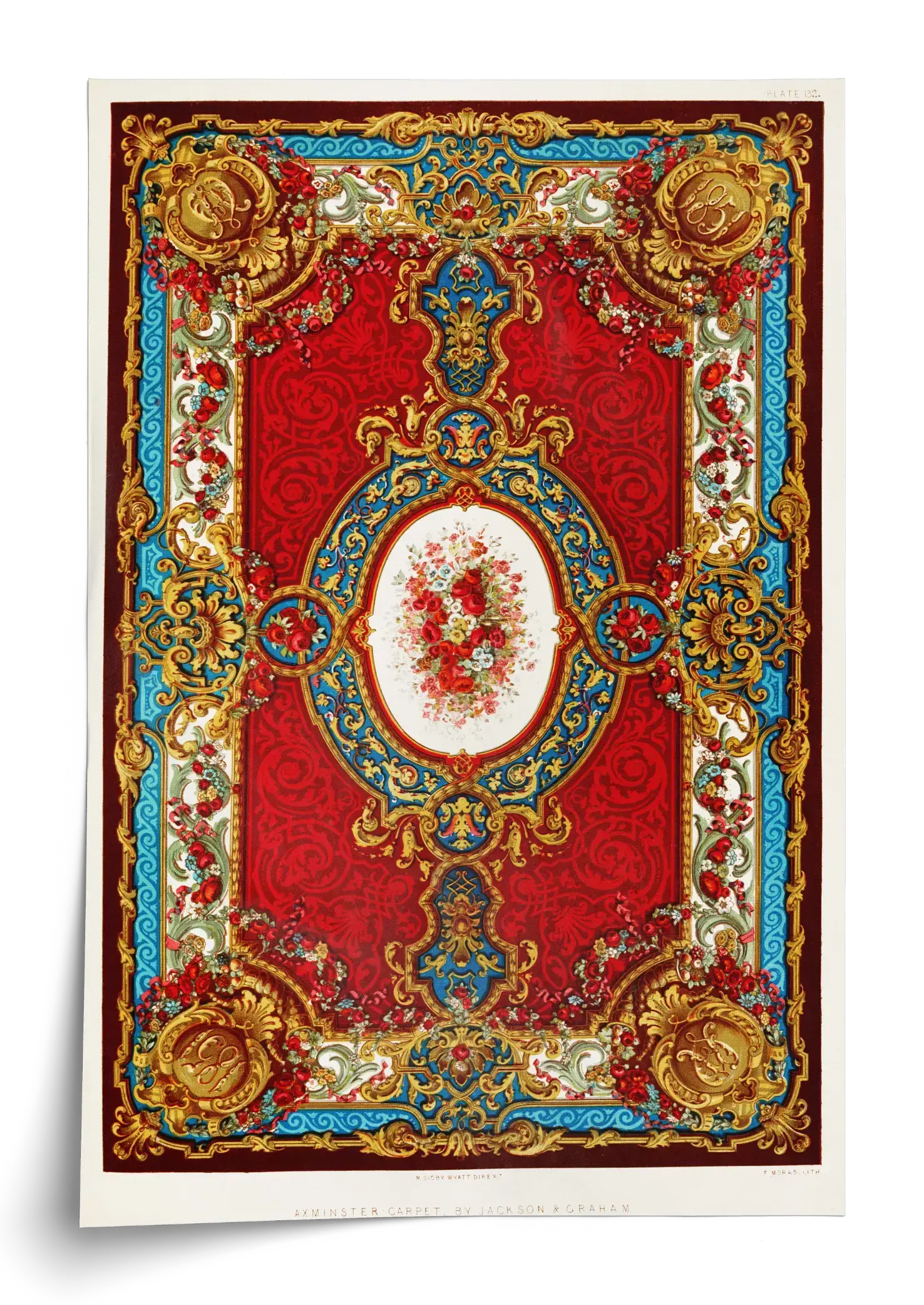 Kunstdruck Axminster-Teppich – viktorianisch rot-gold-blau mit Blüten, bestell jetzt