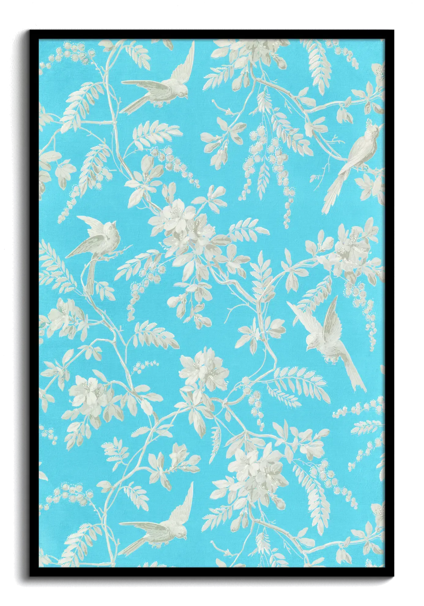 Bird & Floral Pattern Art Print on Aqua Blue - order yours now